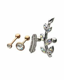 Best Sale ✔️ Multi-Pack CZ Leaf Cartilage Earrings 4 Pack – 18 Gauge 🌟