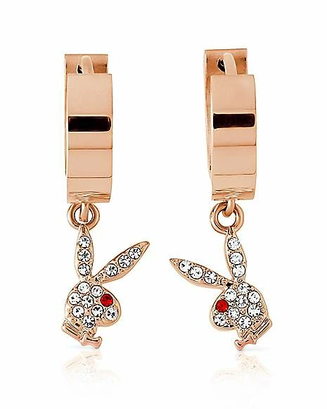 Be the first to review “Best deal π Playboy Bunny Rose Goldtone Clear and Red Gem Huggie Hoop Dangle Earrings π” Cancel reply